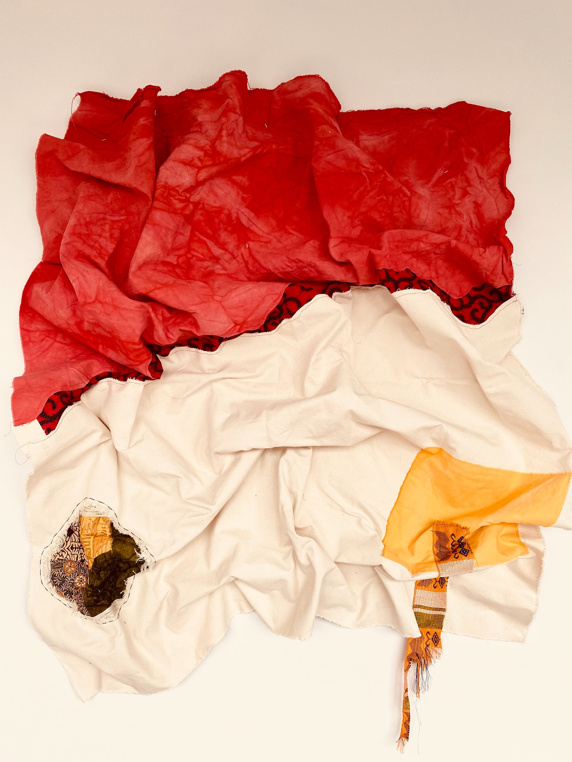 Kwesi Kwarteng is an Ghanaian born artist based in Newark NJ. He mostly works using textiles from various cultures and sewing them to make his pieces. Having a painting background, Kwesi approaches his work like he would his paintings. He considers the fabrics as the paint he uses in making these works and sewing as the brush that brings them together. He dyes canvases using different dying processes then combining them with textiles to create his works.