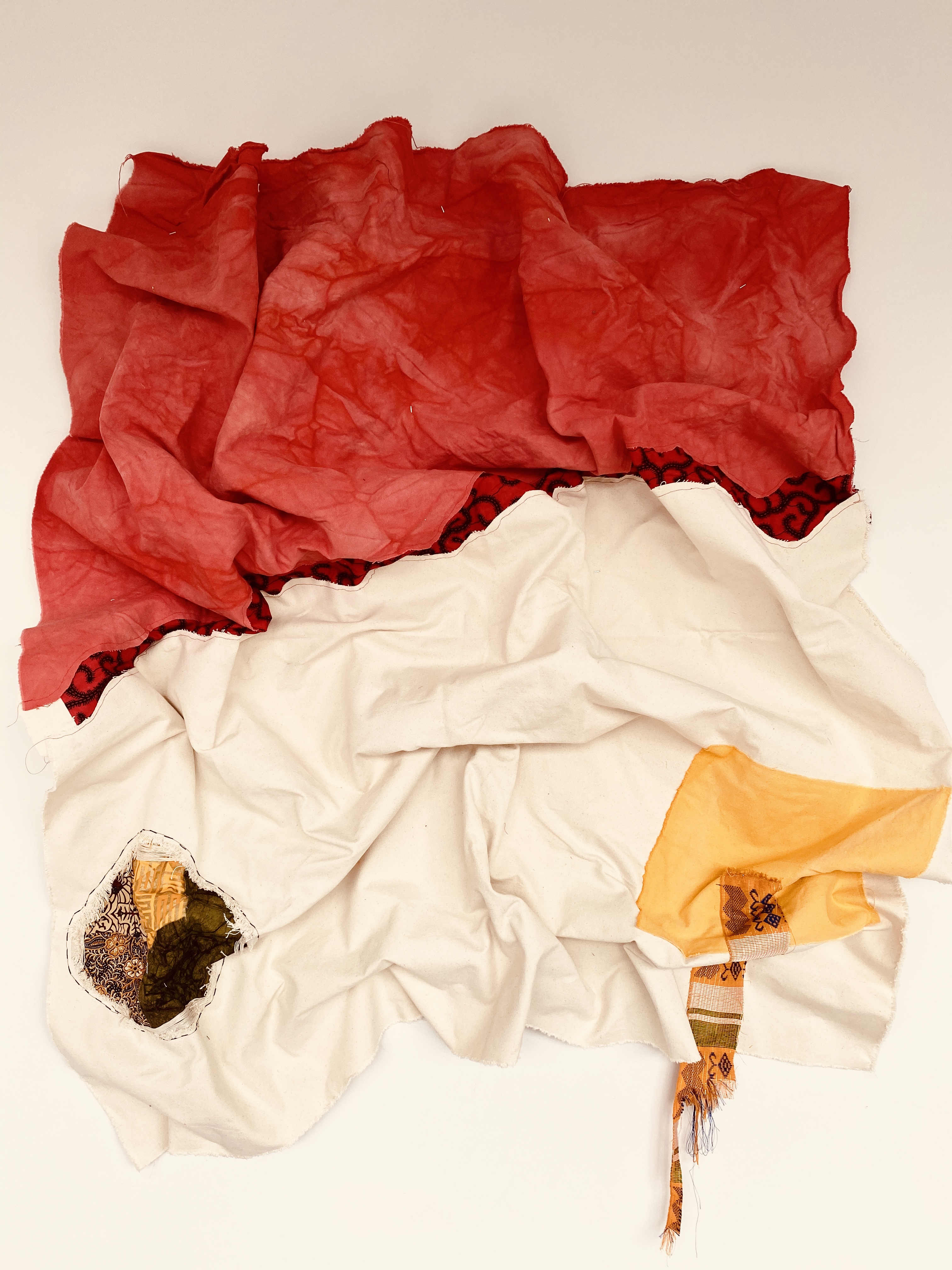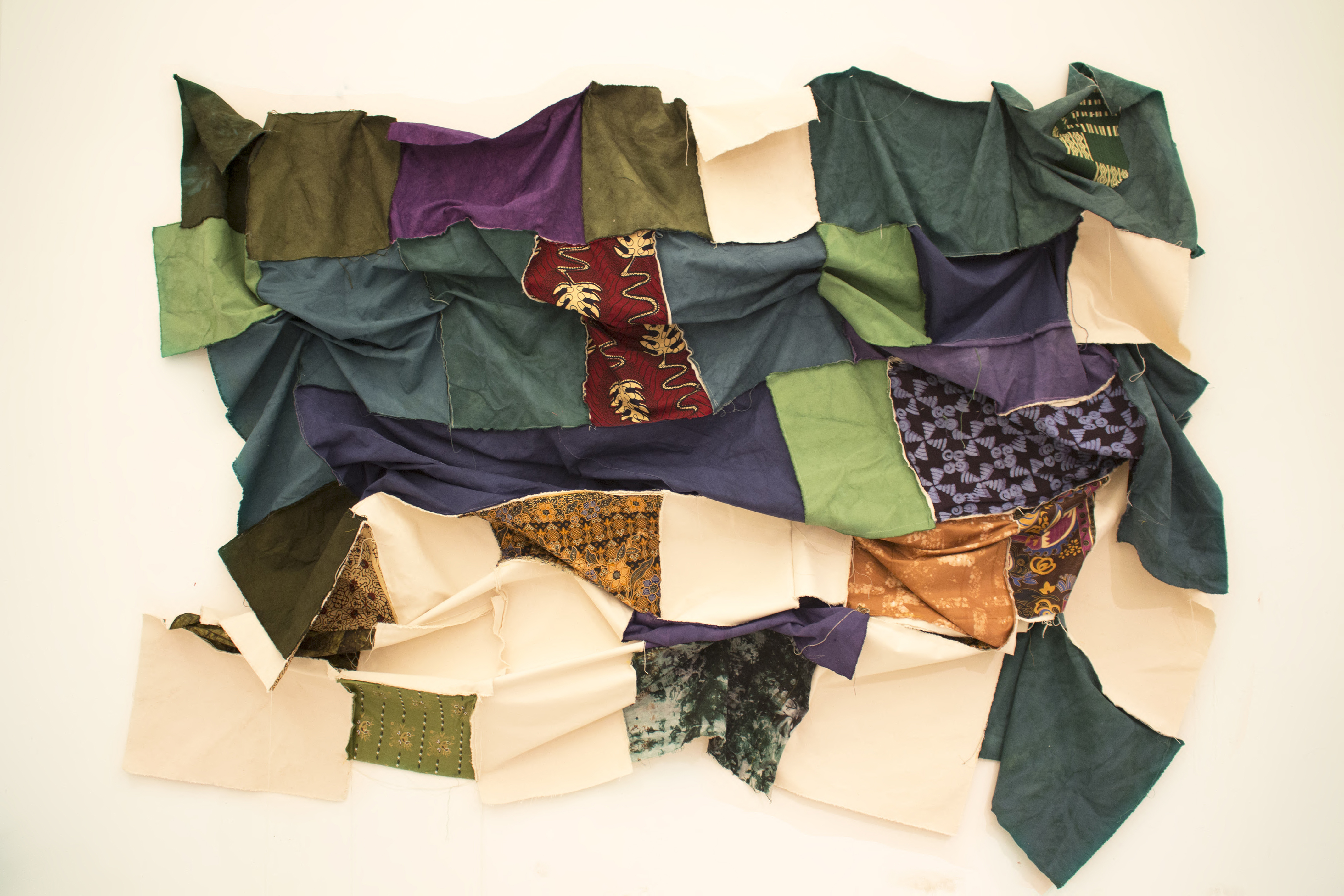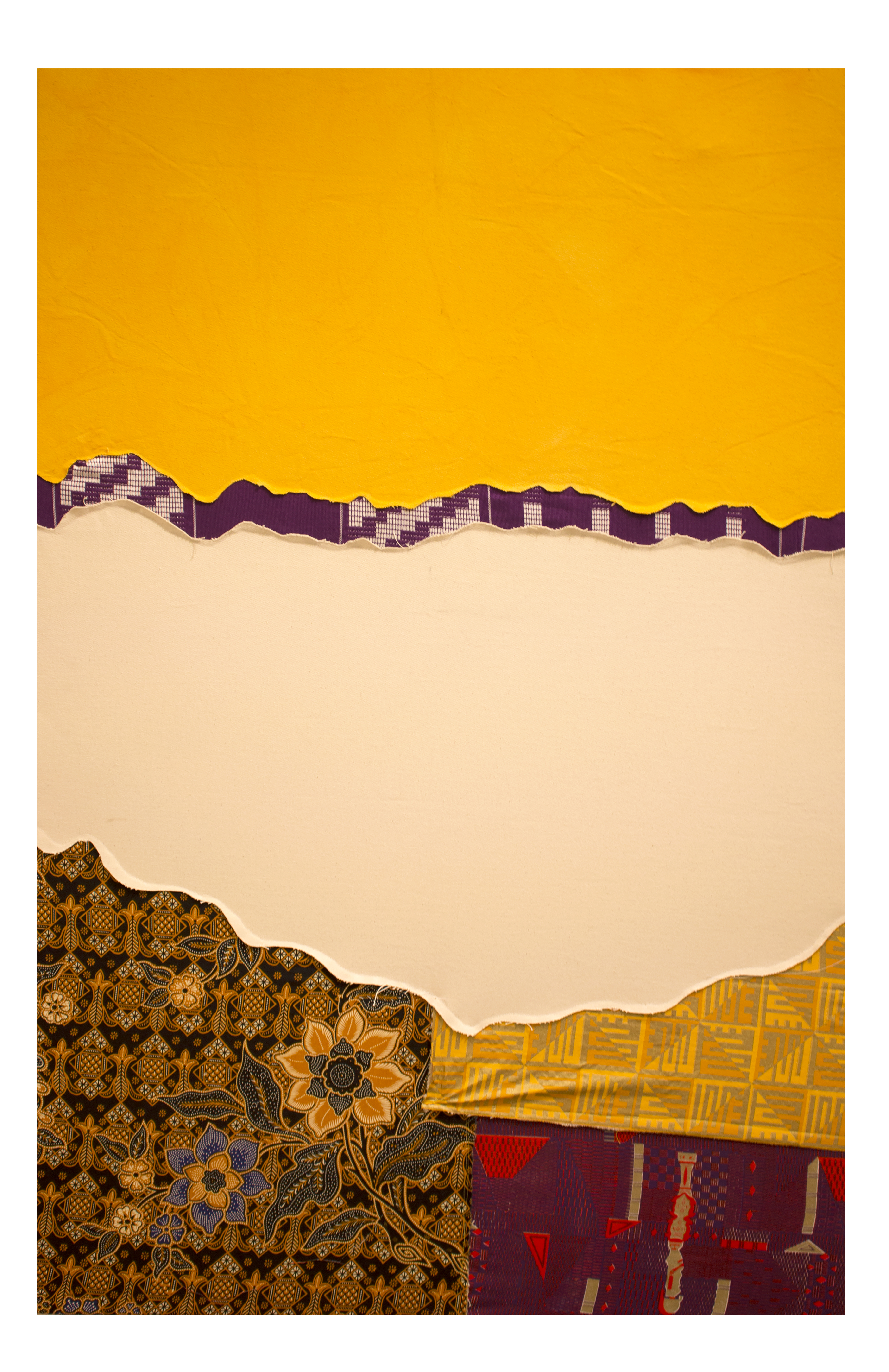 Kwesi Kwarteng is an Ghanaian born artist based in Newark NJ. He mostly works using textiles from various cultures and sewing them to make his pieces. Having a painting background, Kwesi approaches his work like he would his paintings. He considers the fabrics as the paint he uses in making these works and sewing as the brush that brings them together. He dyes canvases using different dying processes then combining them with textiles to create his works.