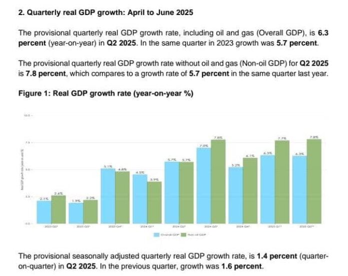 Non-oil GDP climbed even faster, recording growth of 7.8 per cent compared with 5.7 per cent in Q2 2024, signalling resilience in agriculture and other non-oil sectors that helped to offset continued contraction in oil production.